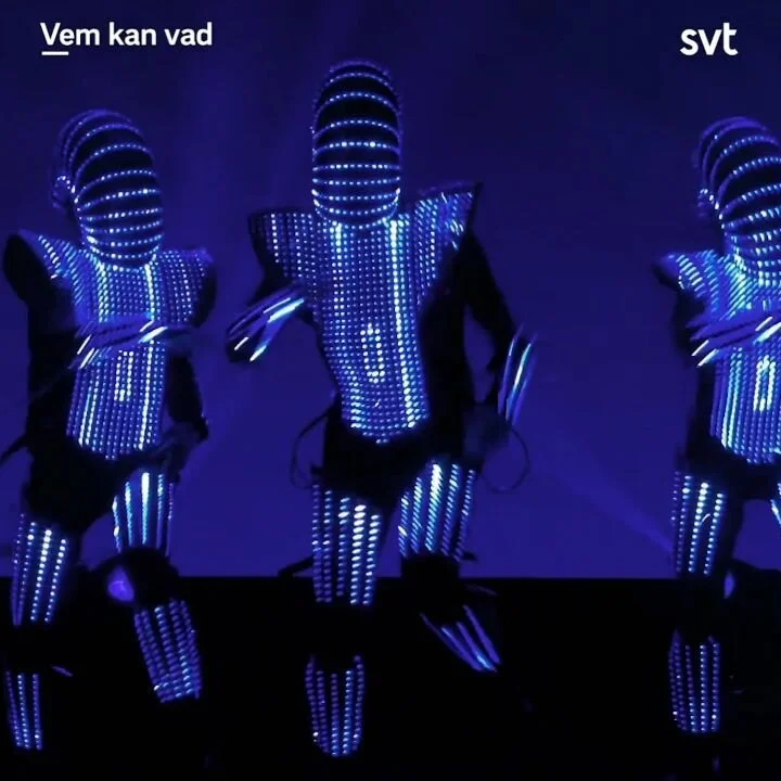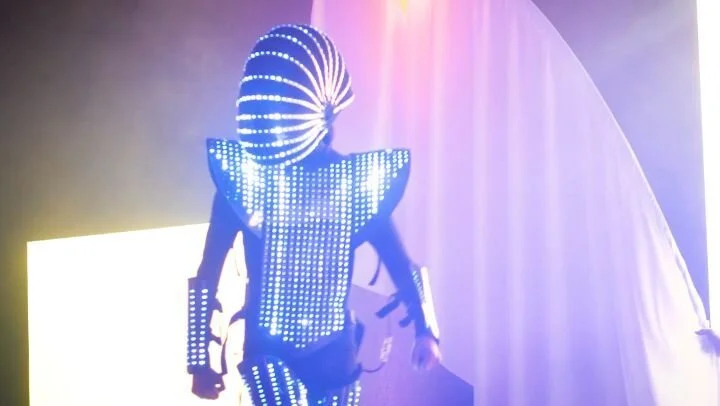 Kostymen blänker i den svaga belysningen och skapar förväntan bland publiken, då börjar musiken och LED-stavarna tänds till bombastisk digital musik. I en välkoreograferad akt svävar bilder och futuristiska mönster i luften för att som final få publiken att jubla då er logga och eventuell texthälsning visas samtidigt som musiken når sitt crescendo. Akten förhöjs ytterligare av snyggt programmerad LED dekor i form av bars placerade runt eller bakom artisten. Showen framförs av en av Skandinaviens ledande LED-showartister i spegeldräkt. En fulländad visuell show som andas: Wow, Unikt, Ert budskap!